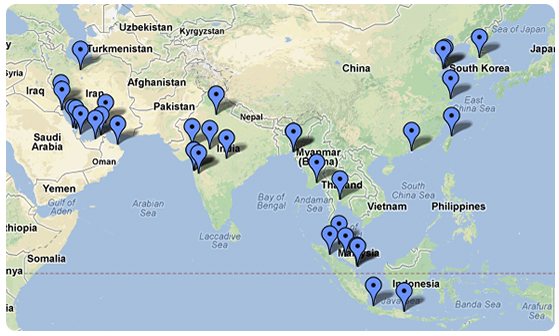 locations in India, South East Asia, China and Arabian Gulf.